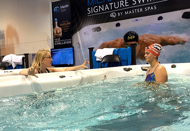 Zwemmers staan al de hele week in de rij voor één-op-één training bij de stand van Master Spas in de Aqua Zone van USA Swimming, een gebied van 100.000 vierkante meter voor fans buiten de Amerikaanse Olympische zwemwedstrijden in het CenturyLink Center in Omaha. In hetzelfde gebied waar de Michael Phelps Swim Spa Challenge plaatsvindt, krijgen deze zwemmers individuele instructie van ervaren zwemcoaches via de toonaangevende programmering van Michael Phelps Swimming. Deelnemers aan de clinic vertrekken met een verbeterde zwemslag en een glimlach op hun gezicht.